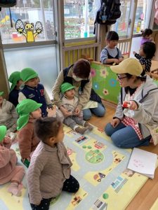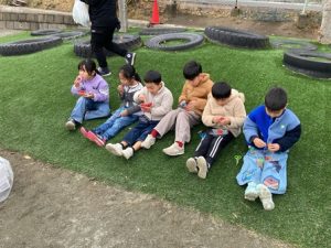 先日、園庭にいちごの苗を置いていちご狩りをしました。