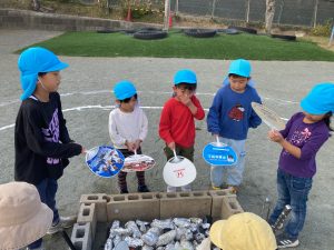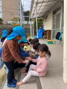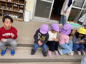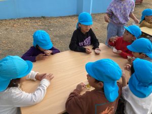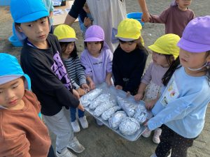 5歳児クラスは最後に出来上がったあったかい焼き芋を全クラスに配りました。
