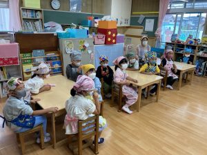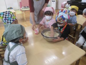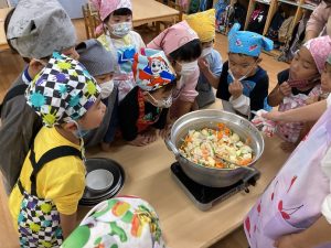 ついついマスクをおろし、美味しそうに匂いに引き込まれる子ども達。