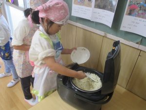 今日は白米と副菜の盛り付けも自分達で行いました。