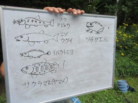 雨煙別学校の方から魚の捕まえ方を聞き、いざ川の中へ!!