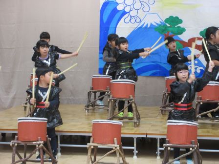 最後は年長児によるしらかば太鼓!みんなで気持ちを一つにして力強く元気に踊りました。