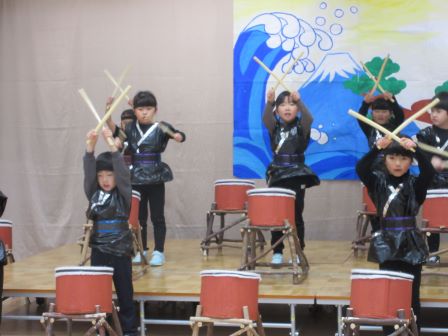 最後は年長児によるしらかば太鼓!みんなで気持ちを一つにして力強く元気に踊りました。
