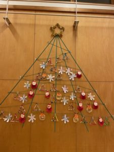 ホールに大きなクリスマスツリーが出来上がり、より期待感が高まっている様子の