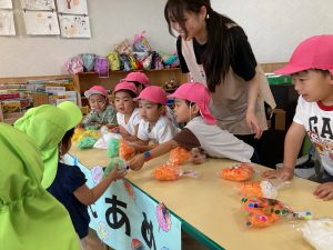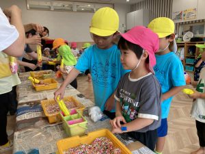 いよいよ夏まつり本番!いろいろなお店でゲームや買い物、さかな釣りなど、時間や場所は気にせずに、自分のやりたい事や行きたいところに自由に行ってたくさん遊びました。